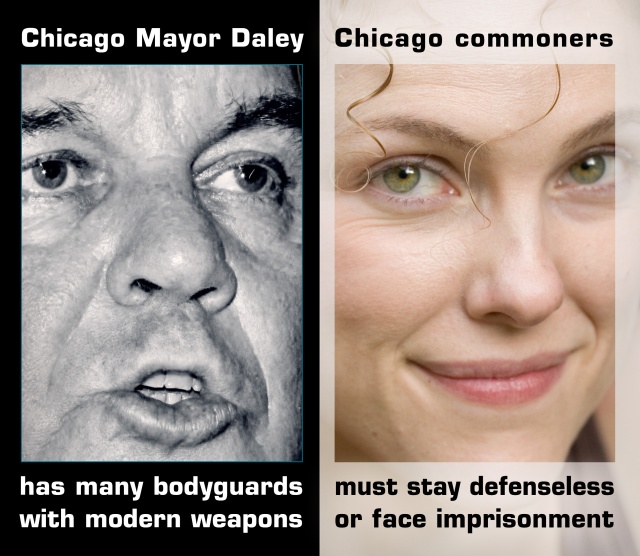 Tags: bodyguards and modern weapons, character, Chicago Mayor Daley & Chicago Commoners, crime, Has many bodyguards with modern weapons vs. must stay defenseless or face imprisonment, liberal, liberals, malfeasance, Mayor Daley, New World Order, Obama, paranoid politicians, political, Psychosociopolitical Warfare, United States of America